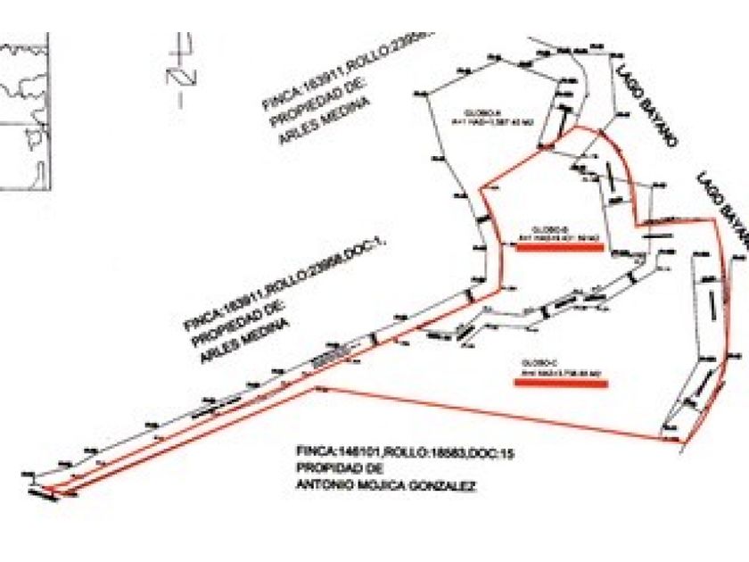 Área total de: 63,170.44 metros cuadrados (6 has. + 3170m2 o 15.6 acres o 679,966.5 pies cuadrados) GLOBO "B" Y GLOBO "C" EN PLANES INCLUIDOS