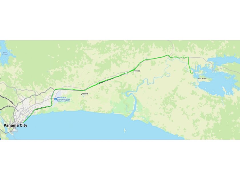 Location: The property is located 5 km (3 miles) on a paved road off the Interamerican Highway EAST of the town of Cañita, approximately 60 km (36 miles) from Tocumen International Airport (PTY) and 75 km (45 miles) from Panama City proper.